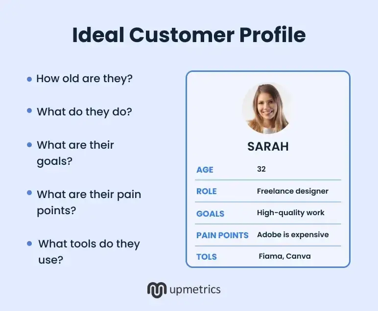 Let’s say you’re building an online design tool. If you say your audience is “people who design stuff,” you’ve already lost the plot. A stronger target would be: “Freelance designers aged 25–40 who want a faster, cheaper alternative to Adobe and work primarily with small business clients.”