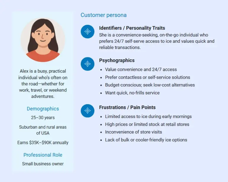 For example, your ice vending business might offer 24/7 self-service availability, contactless payment options, filtered water dispensing, or energy-efficient machines—making it a more convenient and cost-effective alternative to traditional store-bought ice.